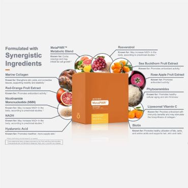 MetaPWR Advantage targets cellular integrity, which helps slow signs of aging inside and out. Its main ingredients are:
